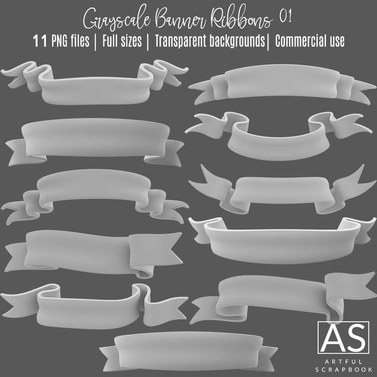 Grayscale Banner Ribbons 01