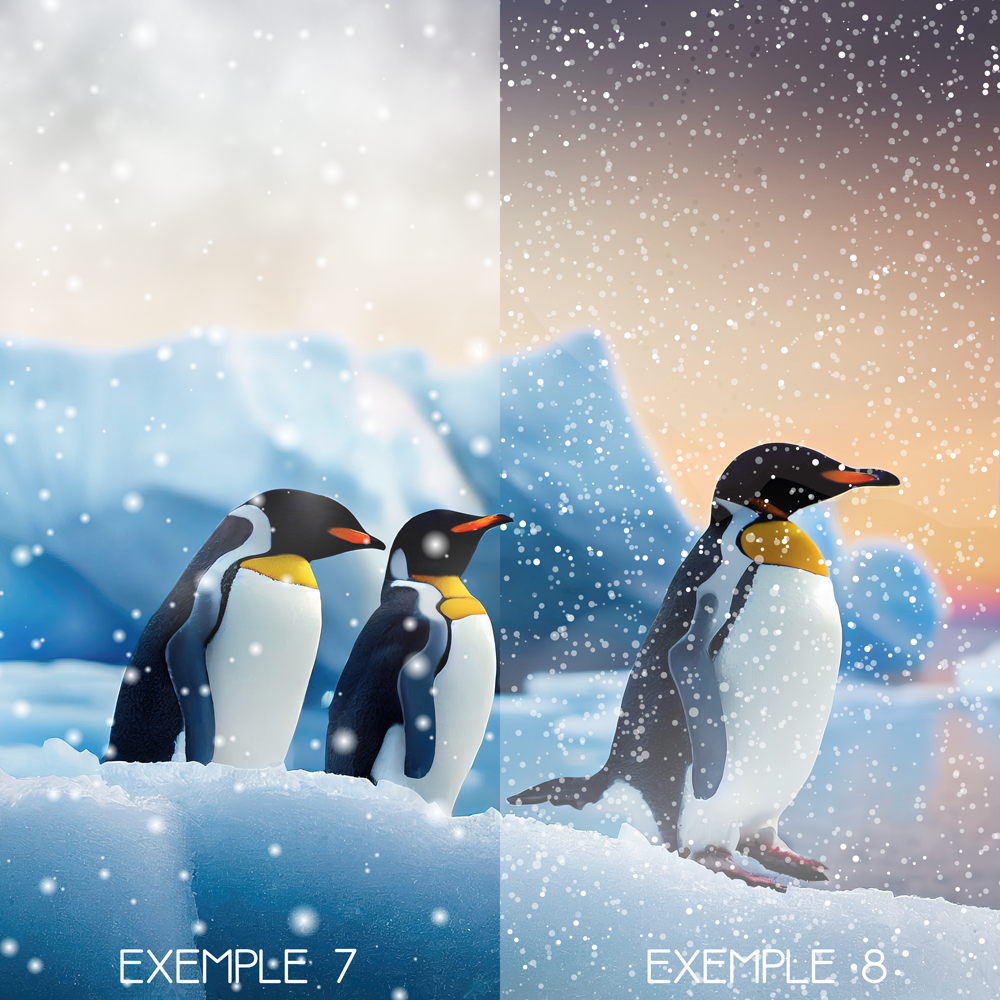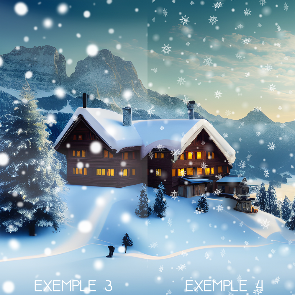 In your image editing software, just place one snow overlay above your photo/image, and apply "screen" blending mode to it :)