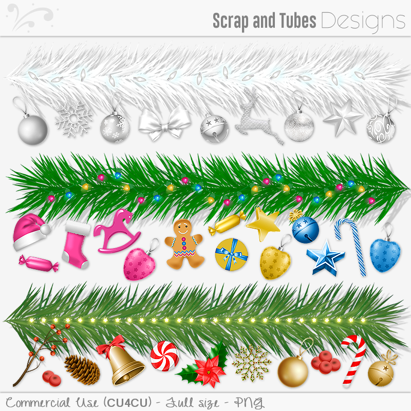 Decorate these beautiful Christmas garlands with these cute little ornaments specially selected for each branches. You can also add your own elements/clipart for a more personalized effect!