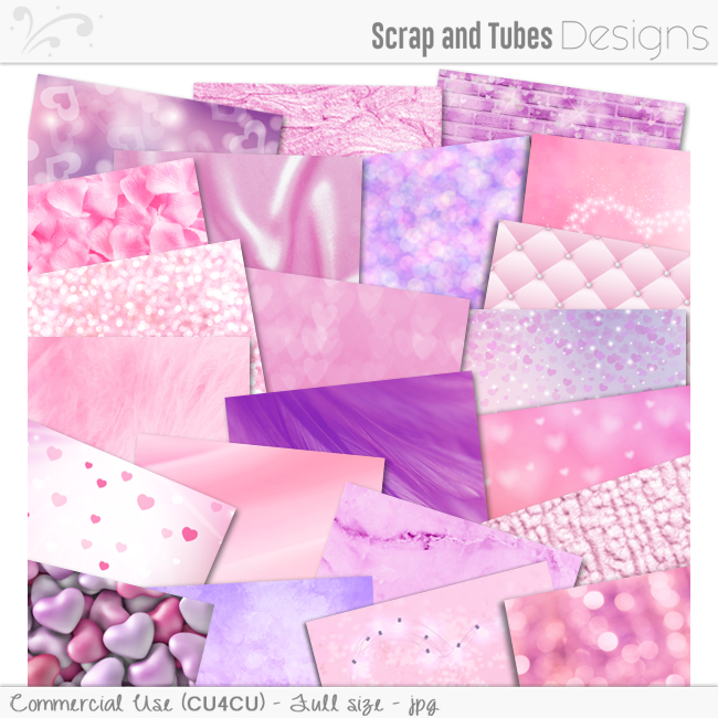 Pretty papers with different textures like satin, velvet, fur, rose petals and of course lots of hearts!