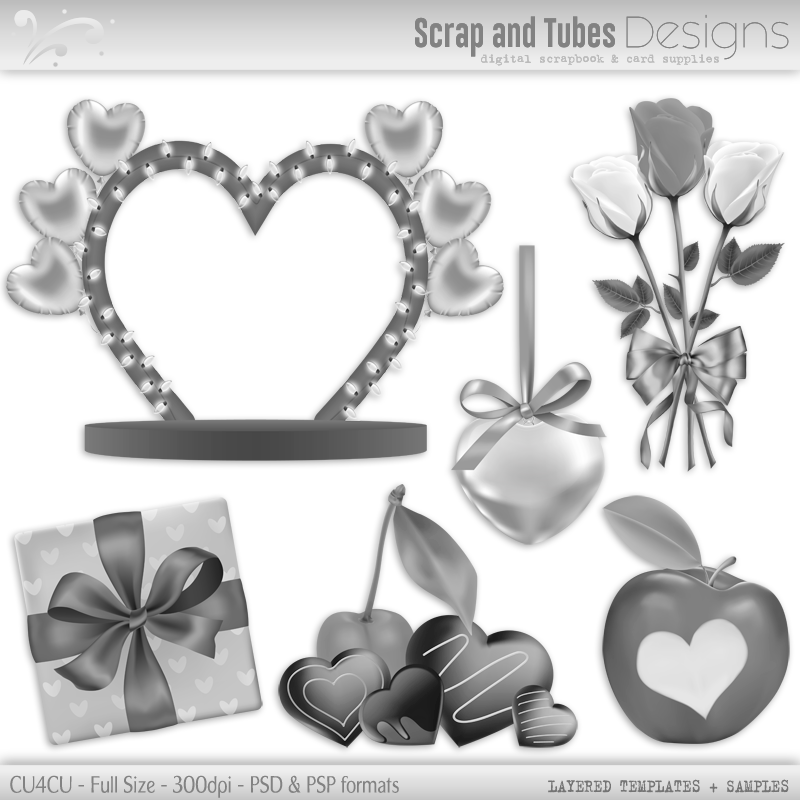 Grayscale Valentine's Layered Templates 3