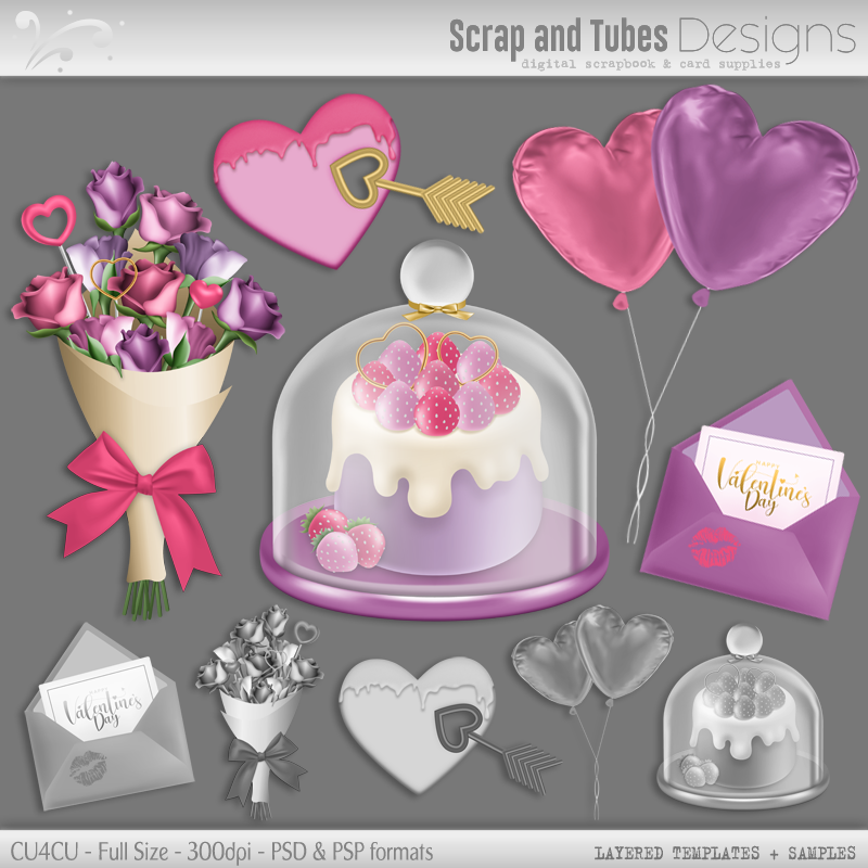 Grayscale Valentine's Layered Templates 7