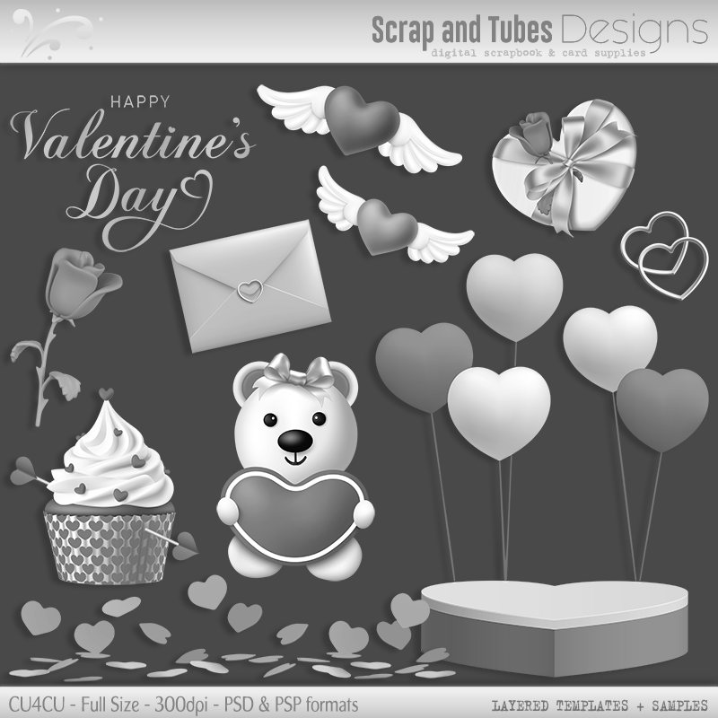 Grayscale Valentines Layered Templates 8