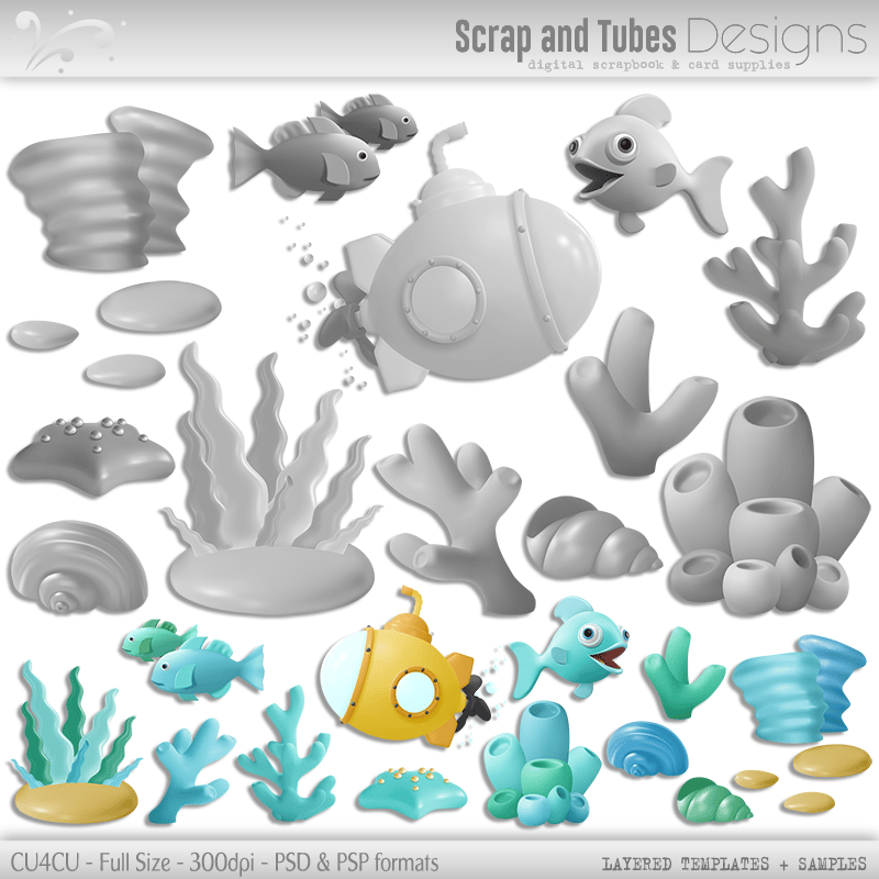 6 grayscale elements - ready for you to be colorized!