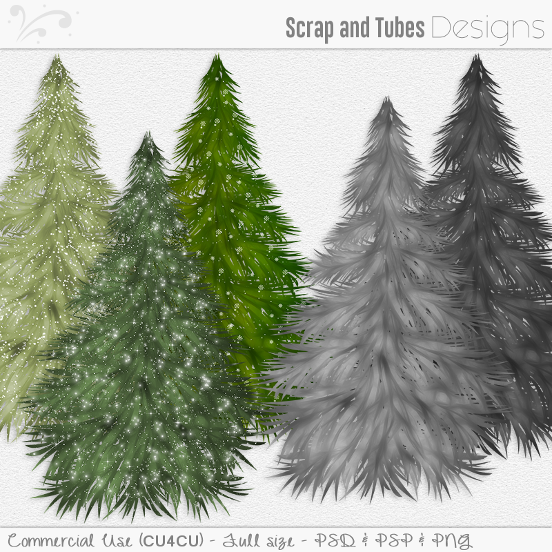 1 psd and 1 psp grayscale tree (light and dark) with snow and sparkles on separate layers