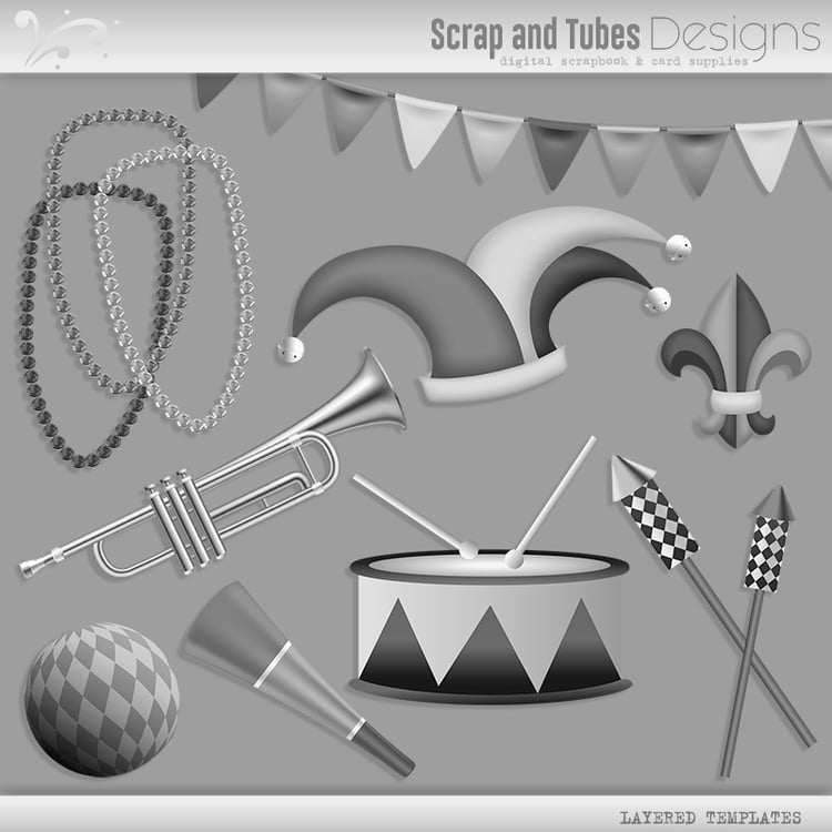 Layered Grayscale Mardi Gras Templates